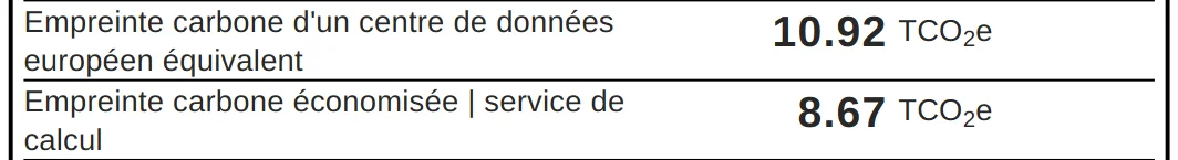 Obtenez un rapport détaillé de votre impact environnemental : les Carbon Facts. Ce rapport fournit une synthèse précise des dépenses énergétiques et des économies carbone réalisées pour chacune de vos tâches de calcul.