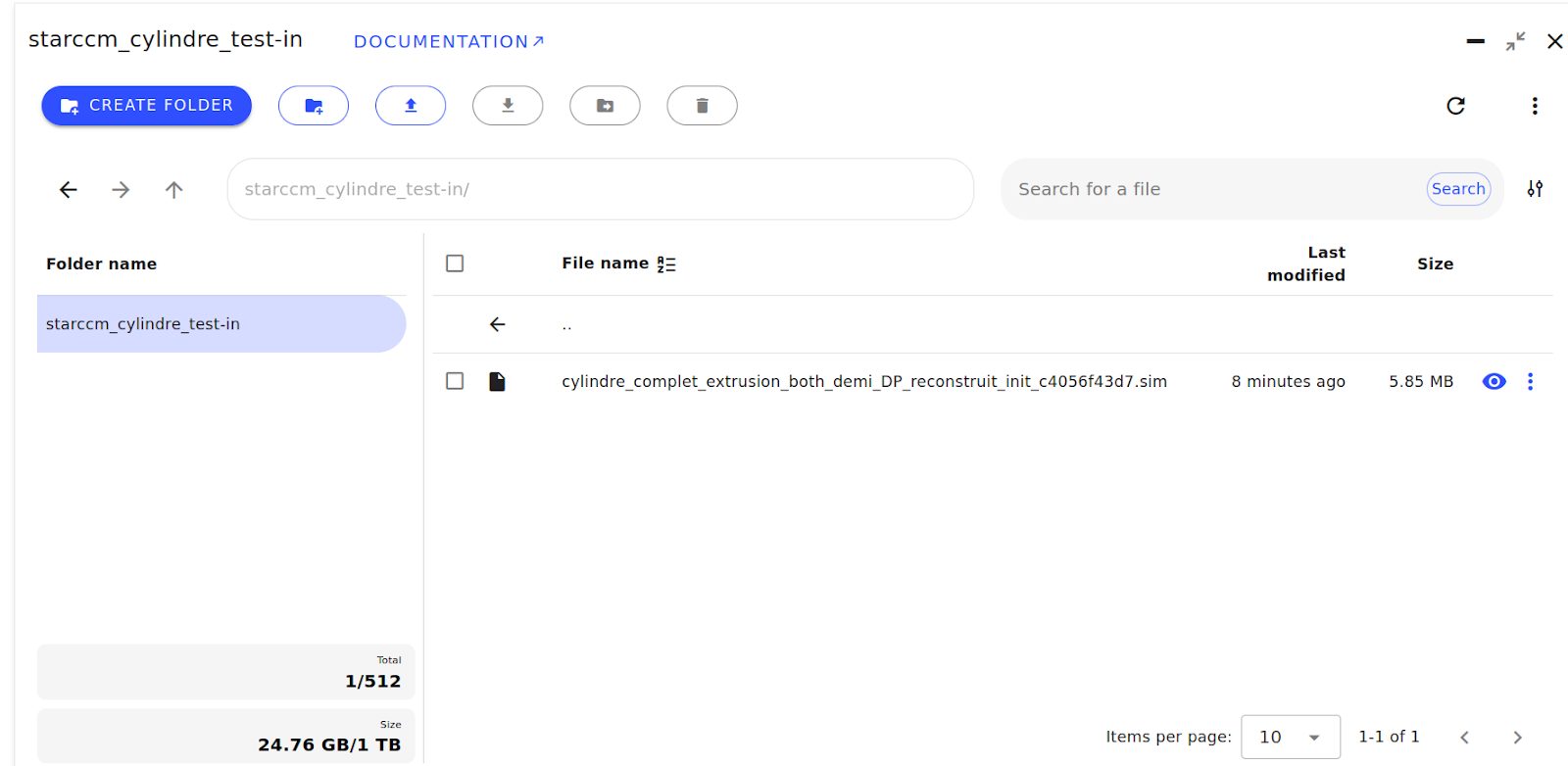Vous devriez maintenant avoir un dossier starccm_cylindre_test-out dans votre répertoire de travail sur votre ordinateur et/ou un bucket starccm_cylindre_test-out dans Tasq contenant tous les fichiers de sortie.